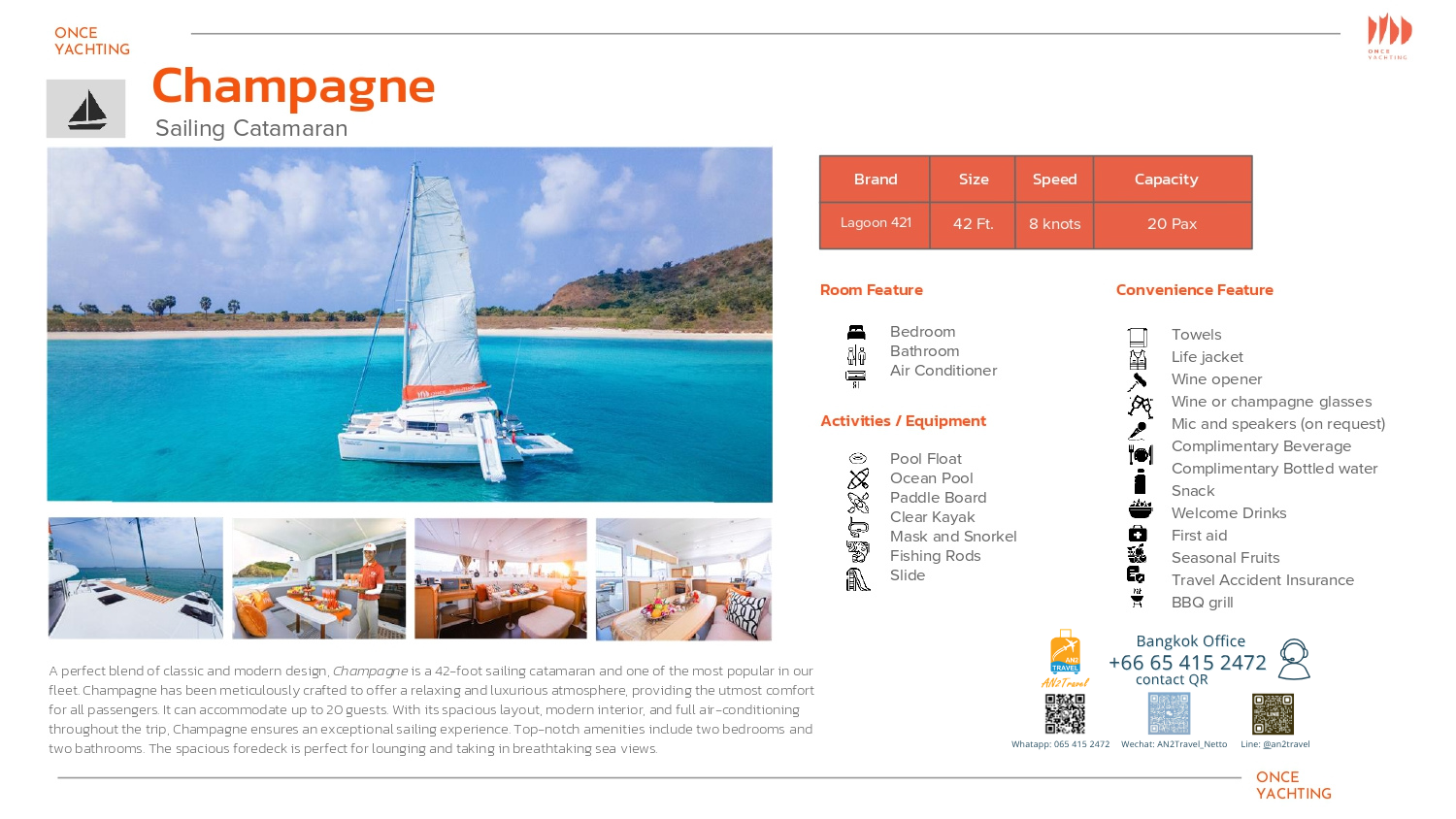 42-foot Catamaran Pax : 20 Max Pax : 20