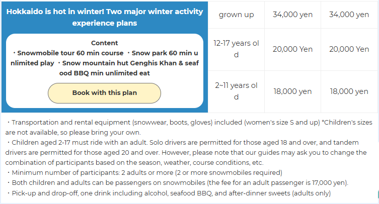 สถานที่ท่องเที่ยวเชิงประสบการณ์ด้านหิมะระดับพรีเมียมสำหรับผู้ใหญ่ ด้วยประสบการณ์กว่า 38 ปี พร้อมเส้นทางสโนว์โมบิลที่ยาวที่สุดในญี่ปุ่น และบริการรับ–ส่งฟรีในซัปโปโร